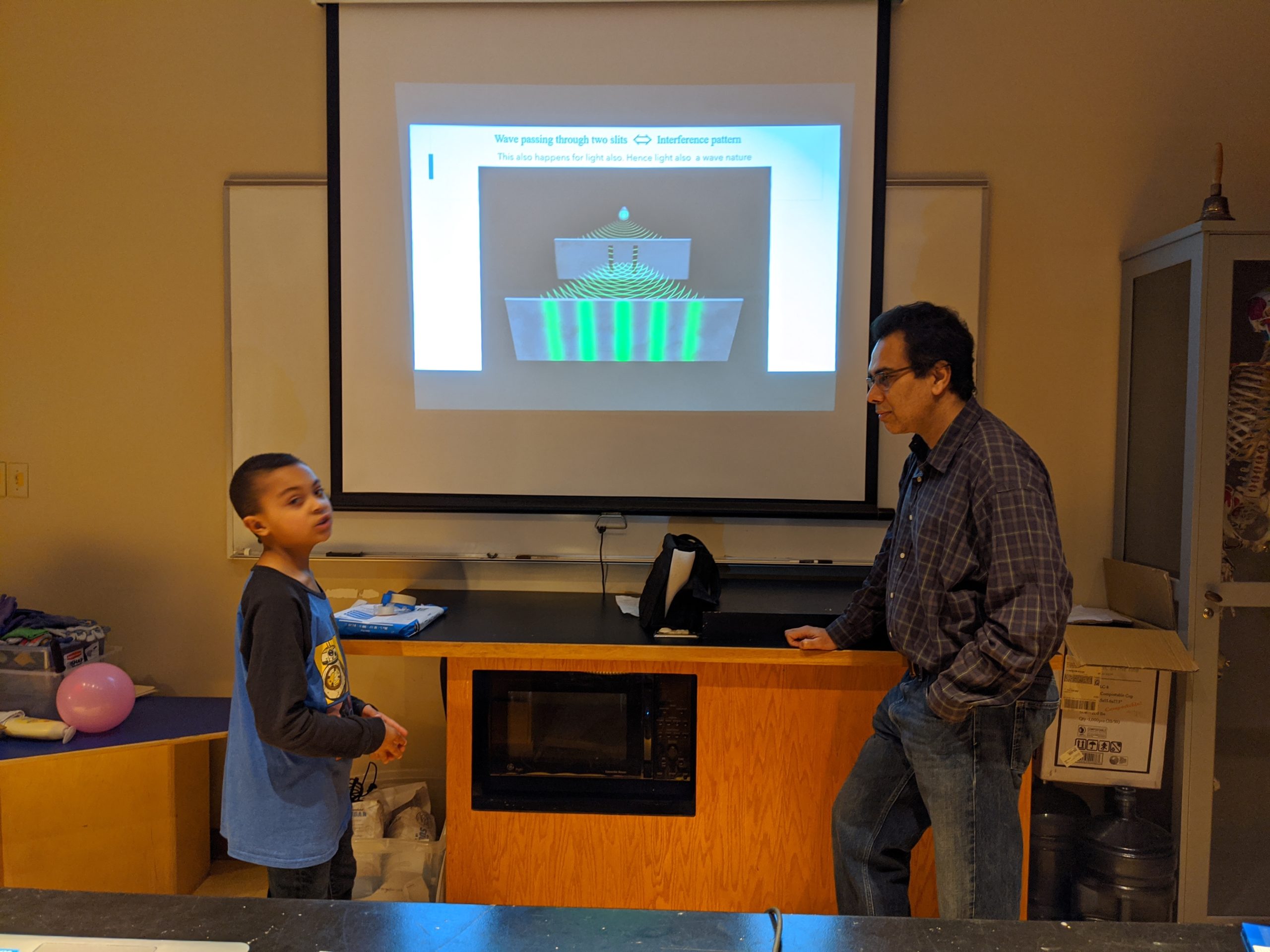 On January 20, 2020, Martin Luther King’s day, the Iyengar group set-up a demonstration at Wonderlab, a local science museum. The goal was to initiate a young audience on the properties of waves and how these are different from those of particles. Equipped with a set of powerpoint slides and set if slits and laser pointers, the group engaged in a really exciting session where the audience was quite young and comprised of elementary school students.